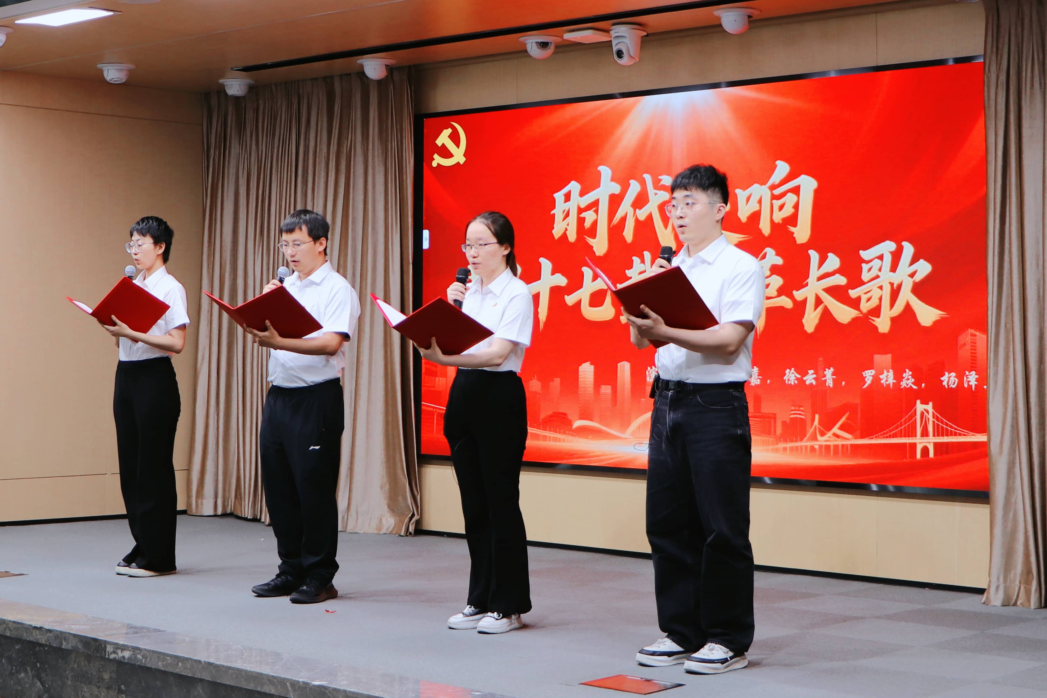 主題朗誦以六個(gè)歷史篇章為脈絡(luò),深情呈現(xiàn)了革命、建設(shè)、改革時(shí)期鑄就的偉大精神,轉(zhuǎn)化凝聚為機(jī)電所人集智攻關(guān)、開拓創(chuàng)新的時(shí)代強(qiáng)音。